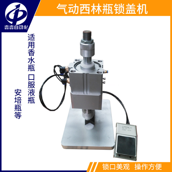 本機采用全氣動控制,特別適合于西林瓶、安瓶玻璃瓶產(chǎn)品的扎口。利用特殊材料制成的扎口頭,把放好噴頭的玻璃瓶放入扎蓋頭內(nèi),通過均衡氣壓把噴頭與玻璃瓶封死。采用氣缸方式進行工作,無需電源,鎖口頭采用機械伸縮方式鎖口,鎖口牢固美觀,具有操作方便、速度快等特點。適合香水瓶、口服液瓶、安培瓶、西林瓶等瓶子的鋁蓋鎖口。